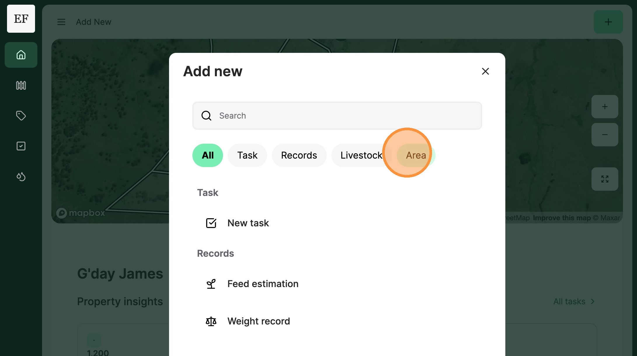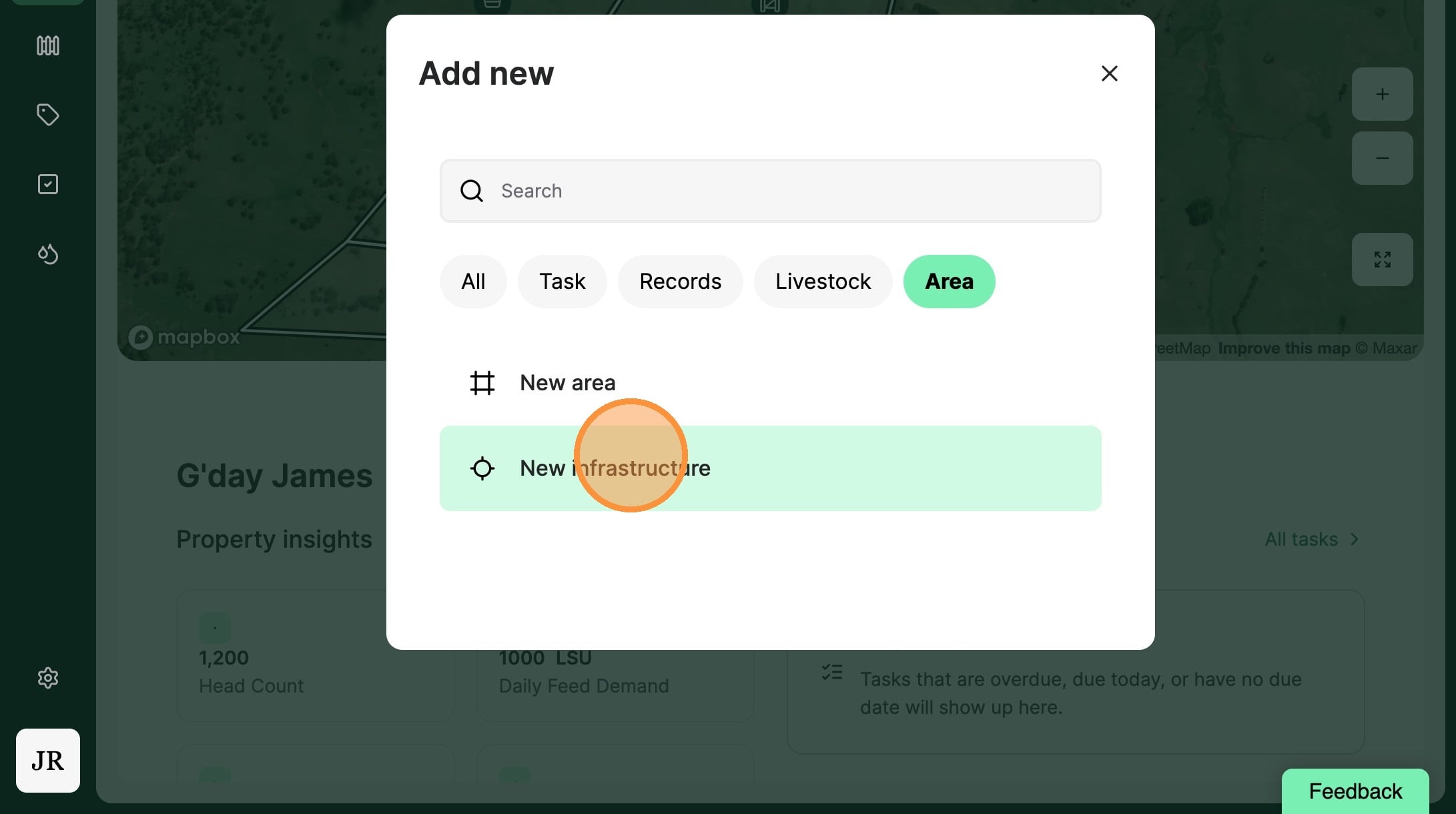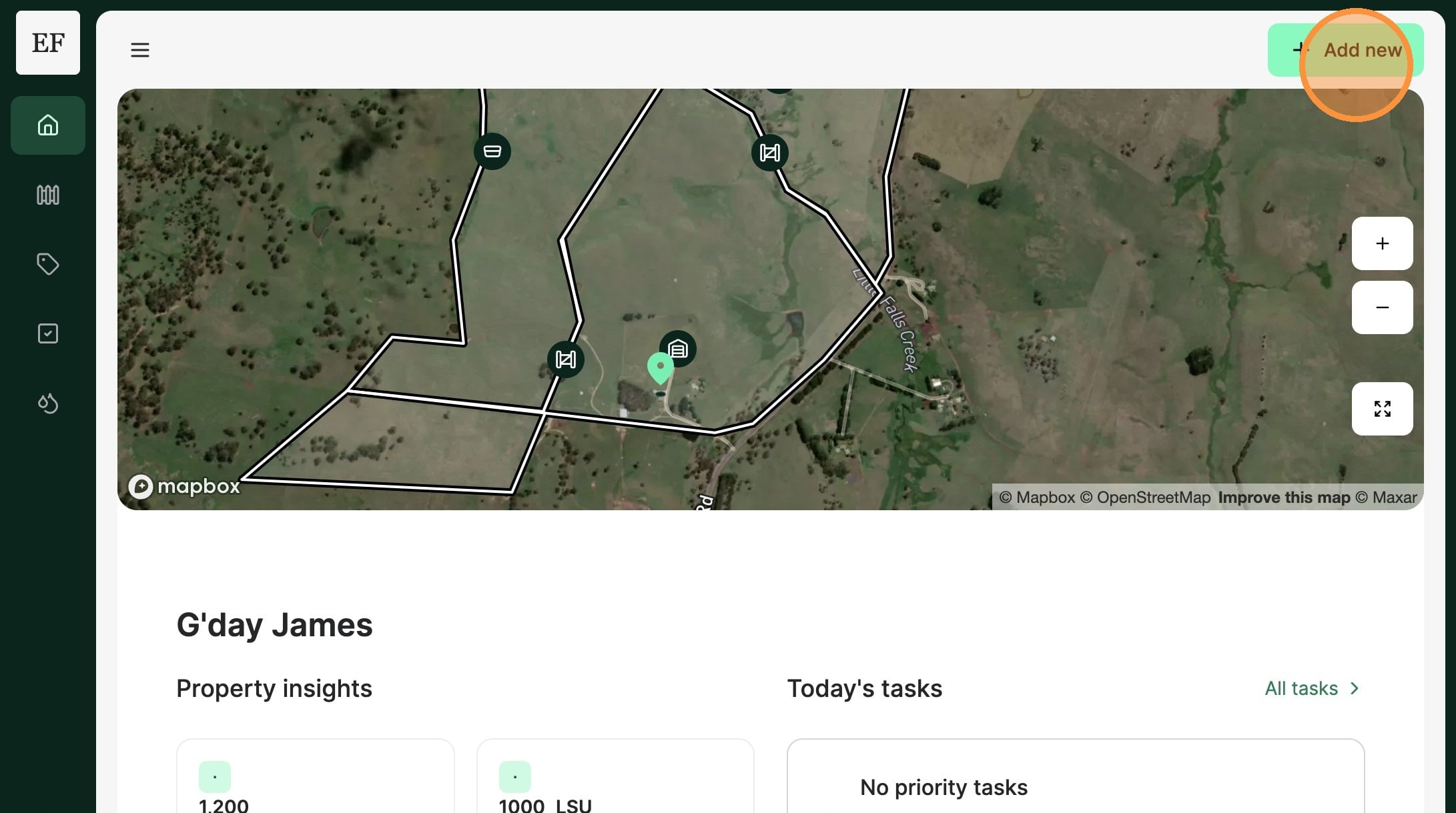7. Select from existing paddock groups, individual paddocks or stockyards the rain gauge is located in