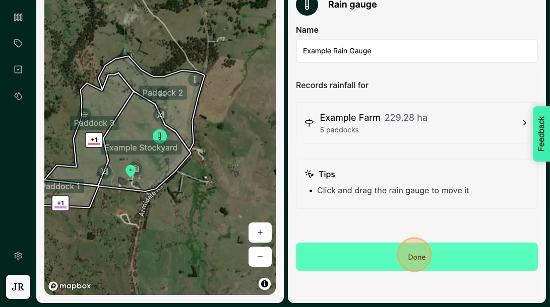 5. Give your Rain Gauge a name and adjust the location of the icon on the map to your desired location