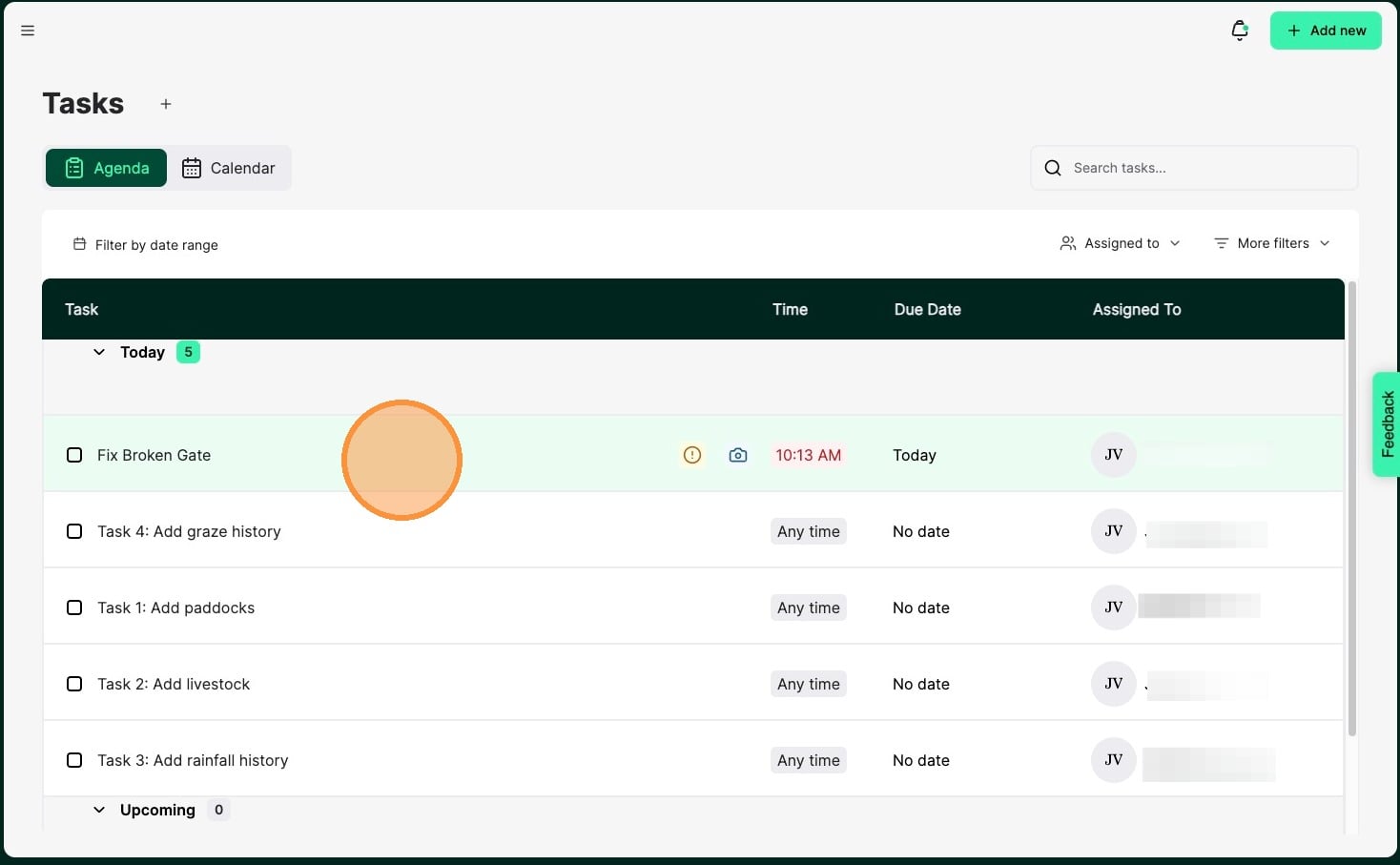 2. Click on the task you are going to complete.