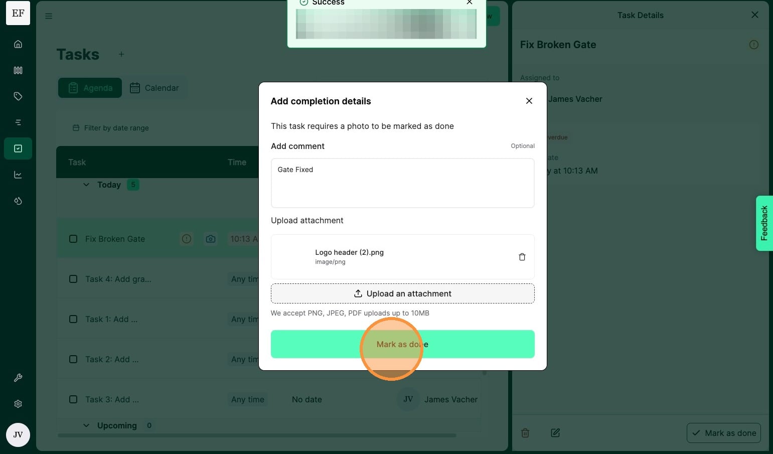 5. Select "Mark as done" to complete task