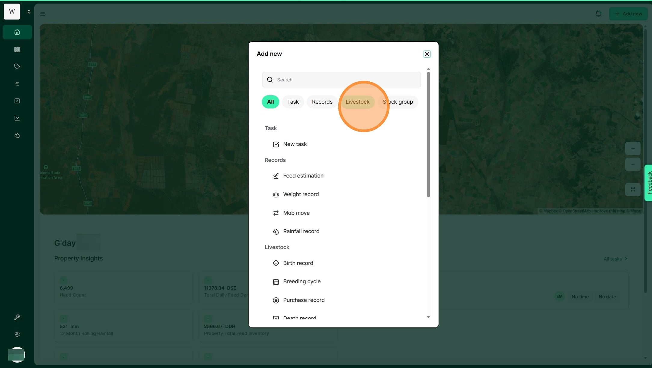 2. Select "Livestock"