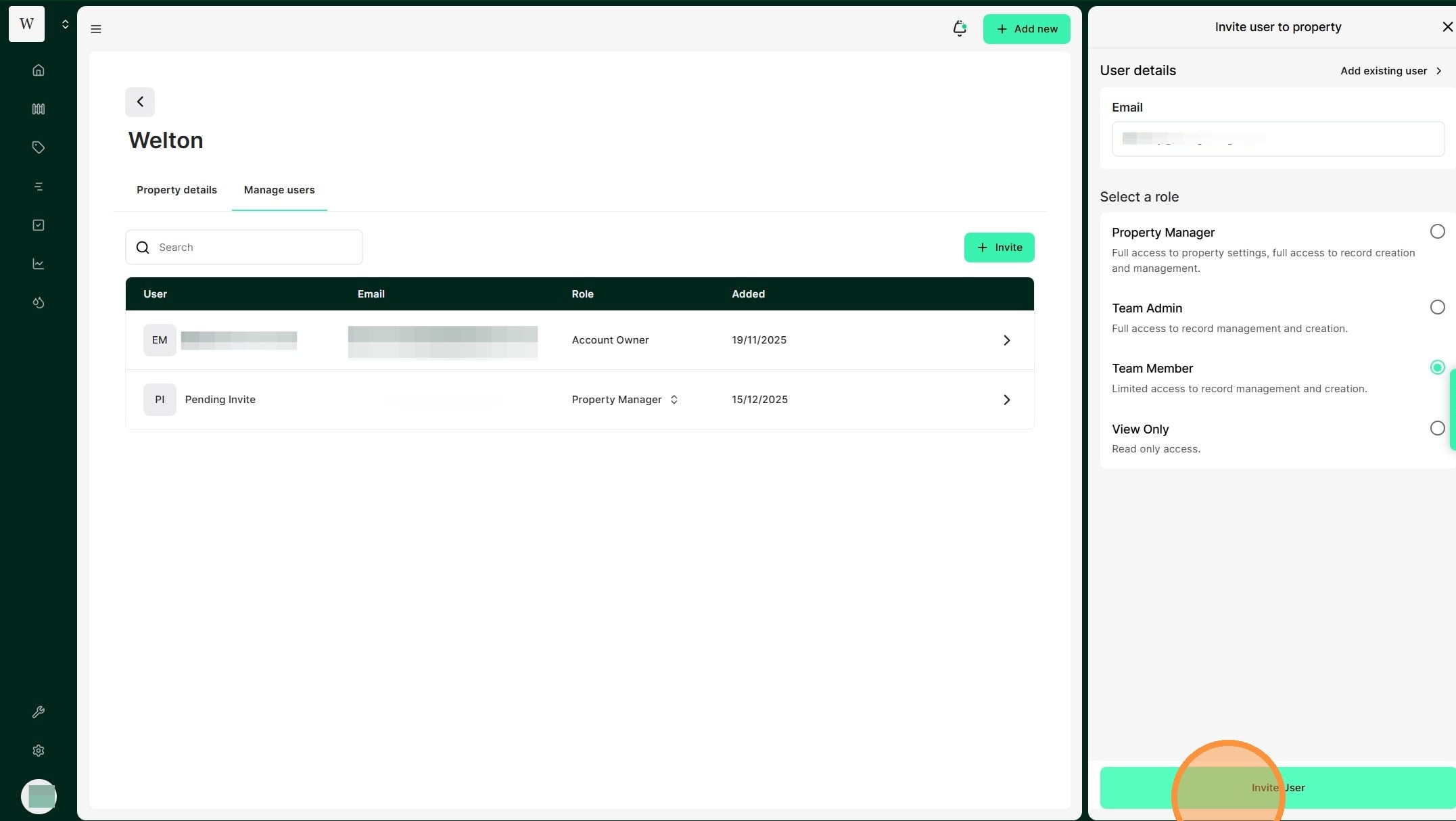 4. Select "Invite User"
