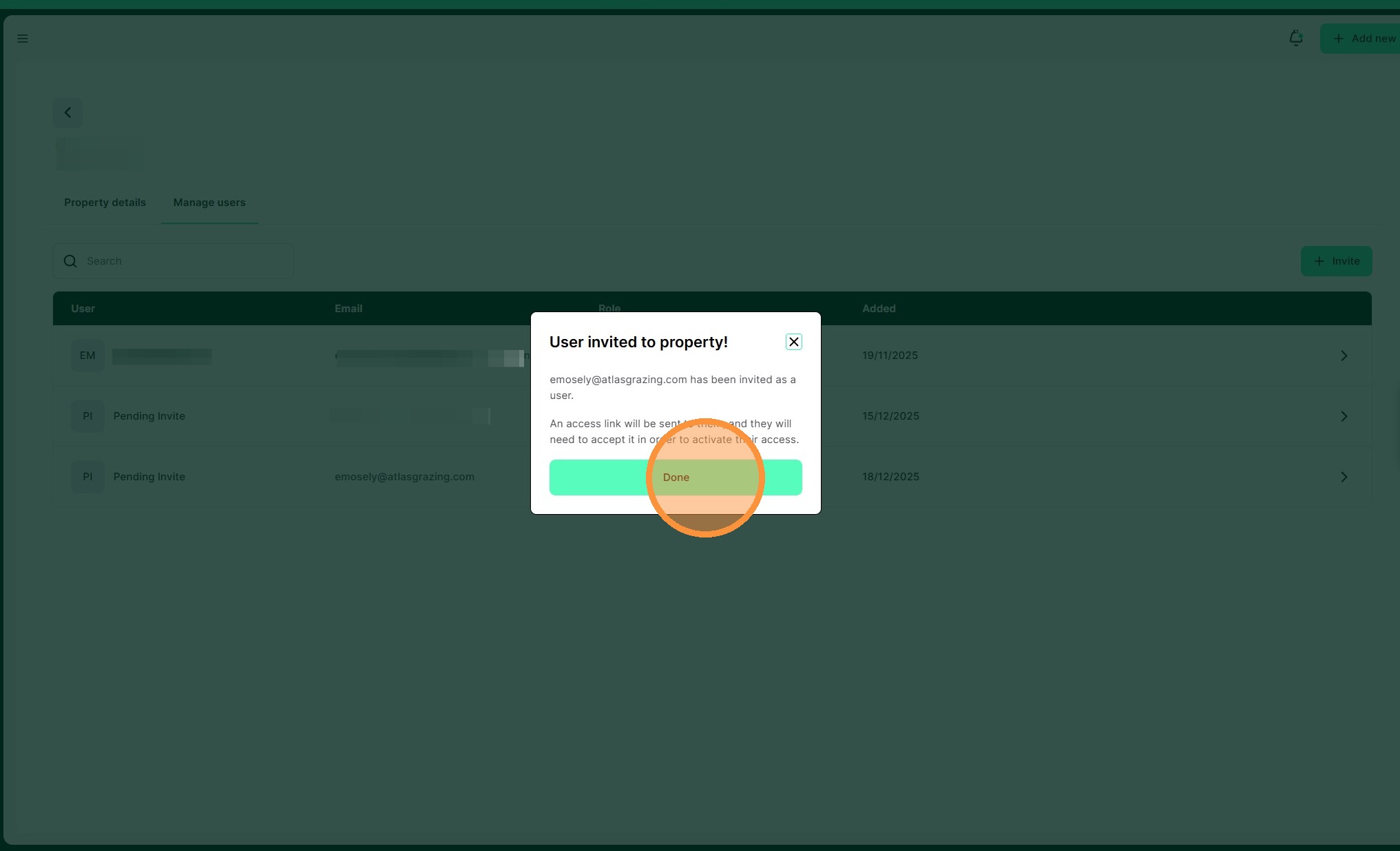1. From the Manage Users dashboard, Select "Invite"
