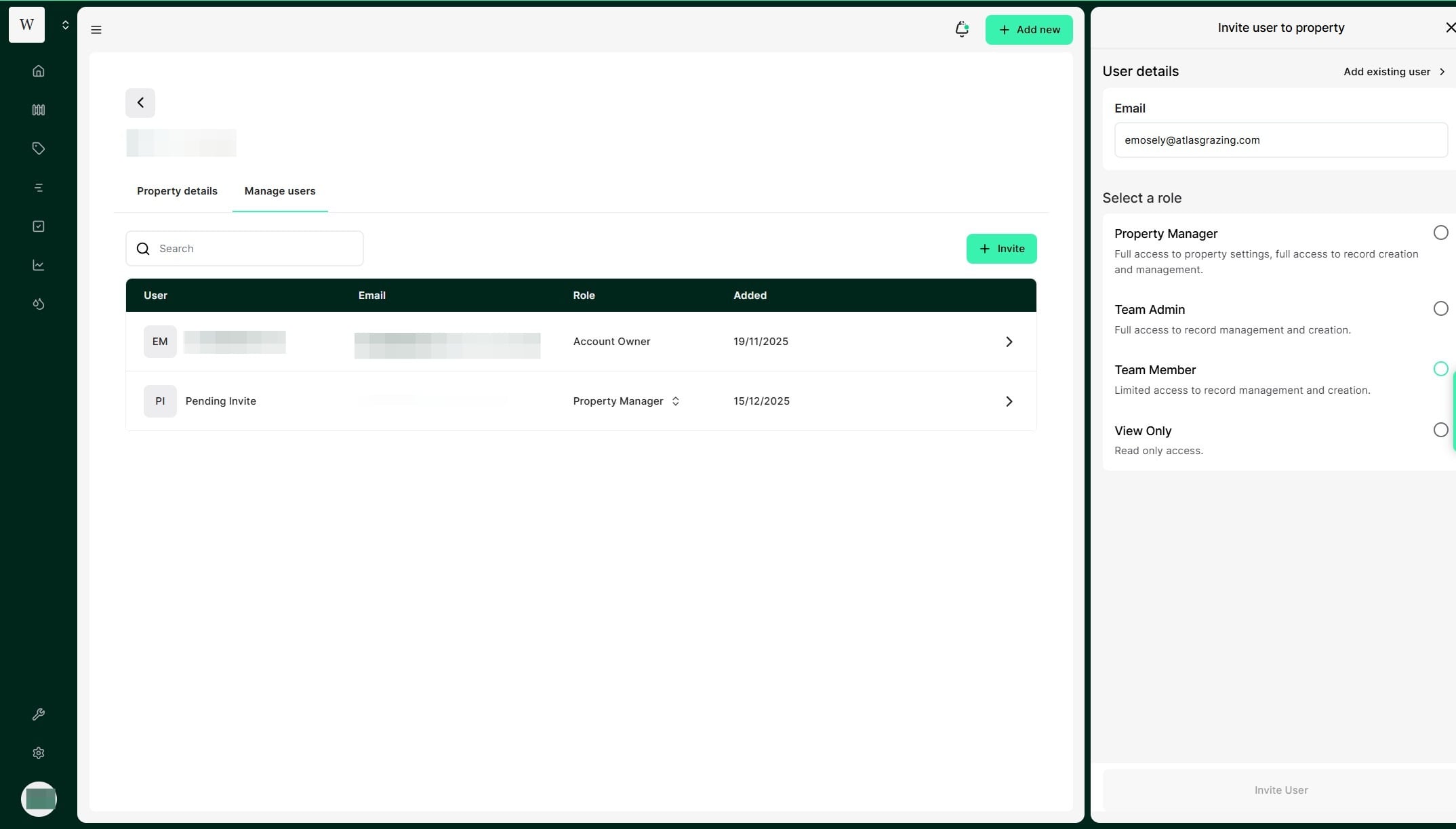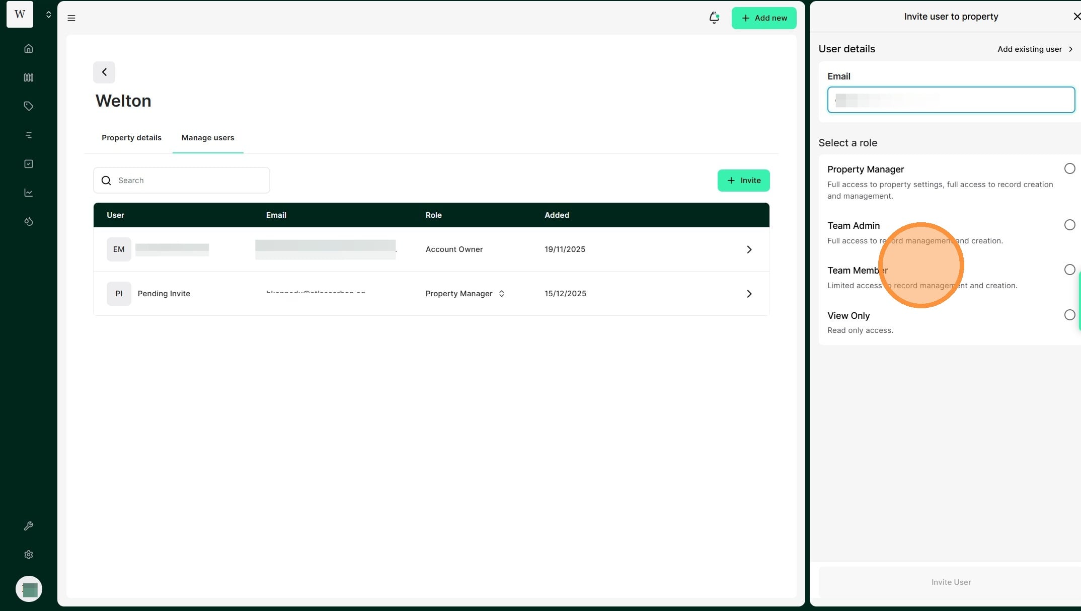 Property Manager: Full access to property settings, full access to record creation and management. A Property Manager can access all account, financial and property information with no restrictions.