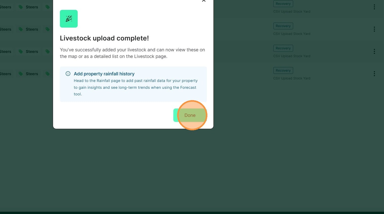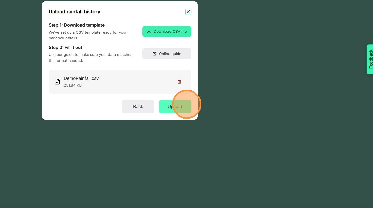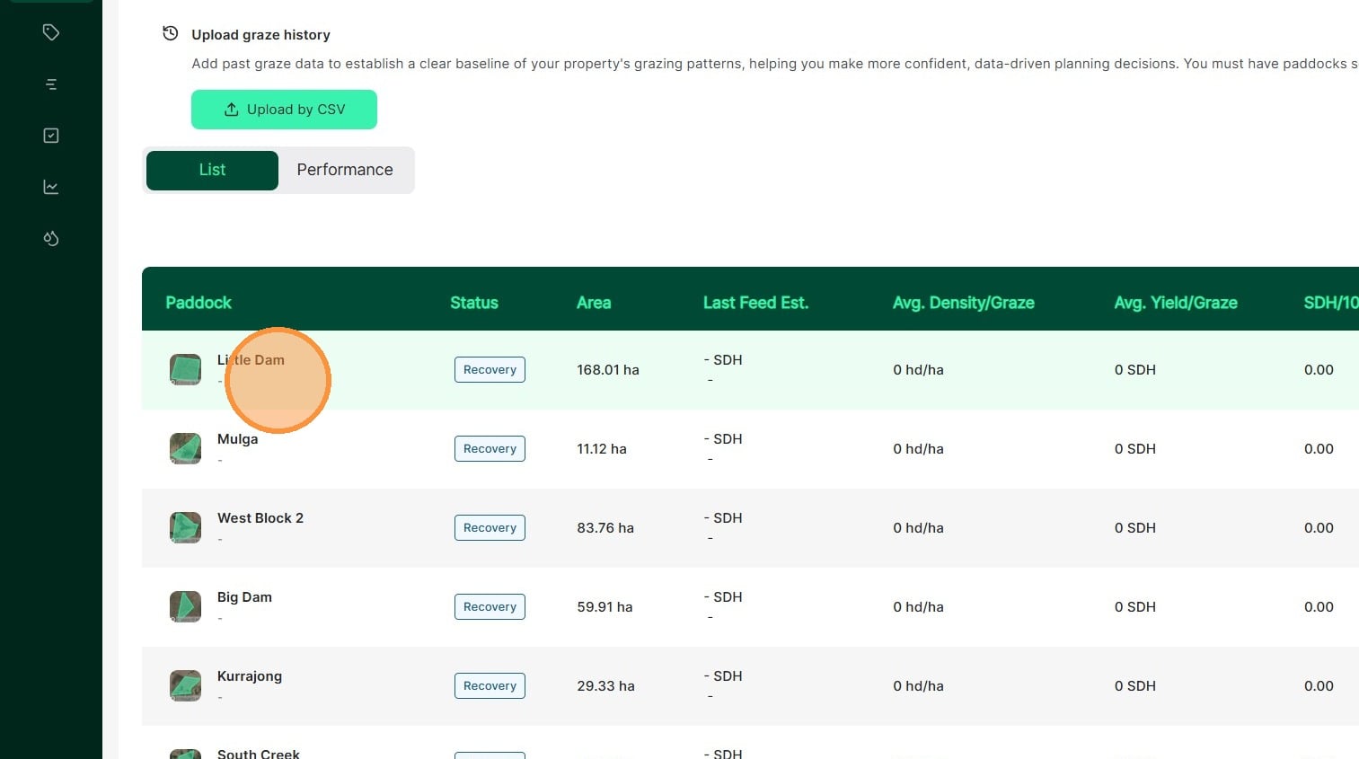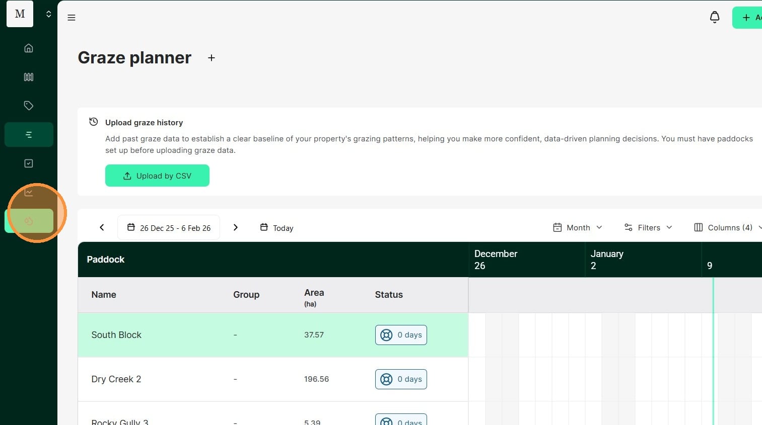 Download and fill out the CSV file for your paddocks, mobs, rainfall and graze history, then drag and drop the file into our bulk upload feature.