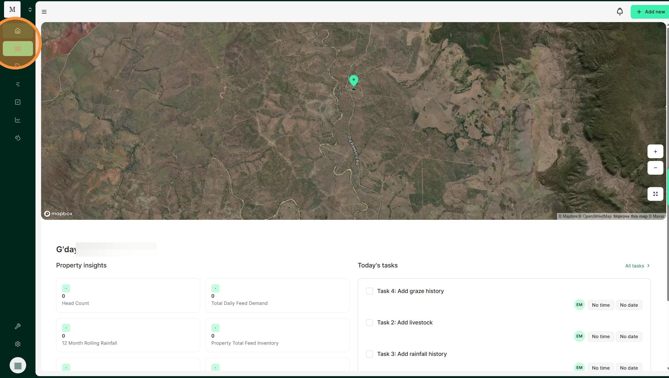1. From the Home Dashboard select the Paddocks tab.