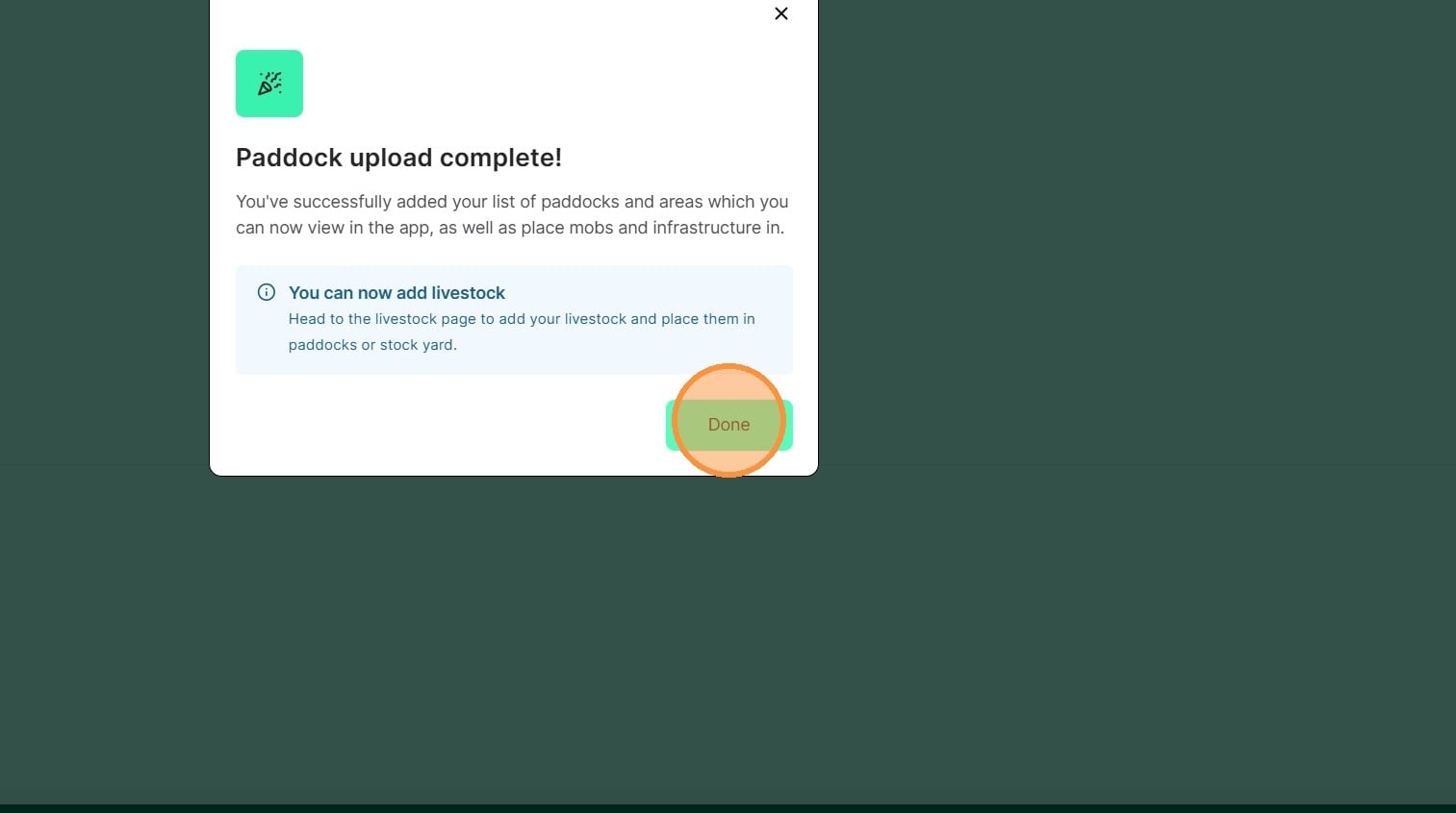 Please note: For large paddock lists this can take a few minutes to upload. Please stay on the page until you get confirmation that the paddocks are completed.