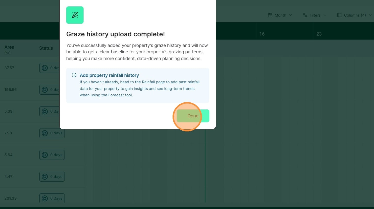 You can also import historical grazes and rainfall which will give you immediate insights on your property’s historical performance. These are not required to get going and start importing records.