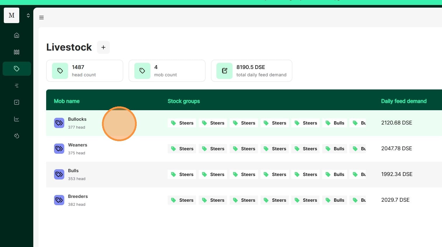 19. Livestock mobs are now available to view. Livestock are imported to a virtual stock yard. Create a back dated move record to import them to their current paddock.