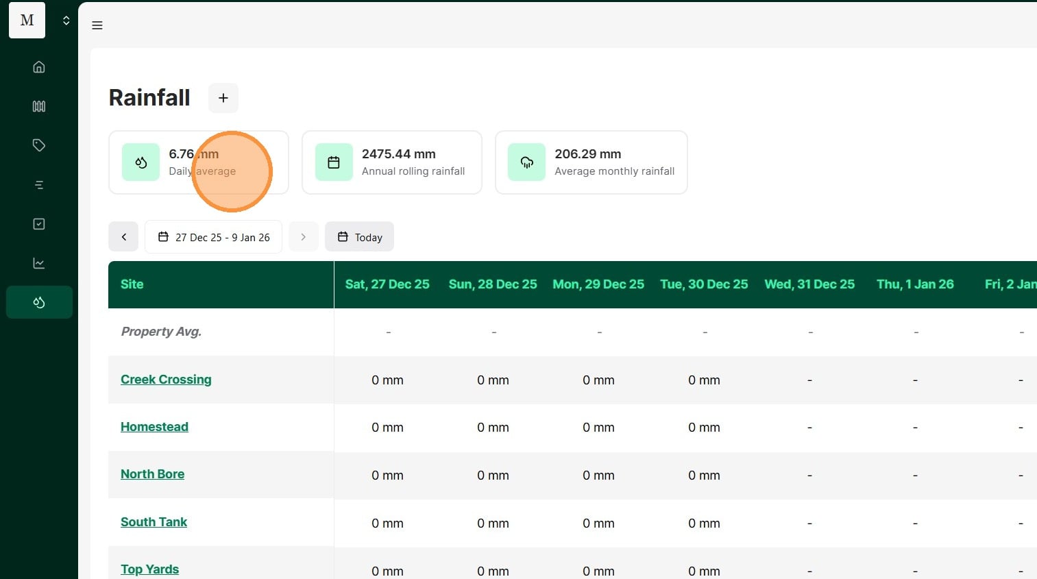 25. Select the Rainfall tab.