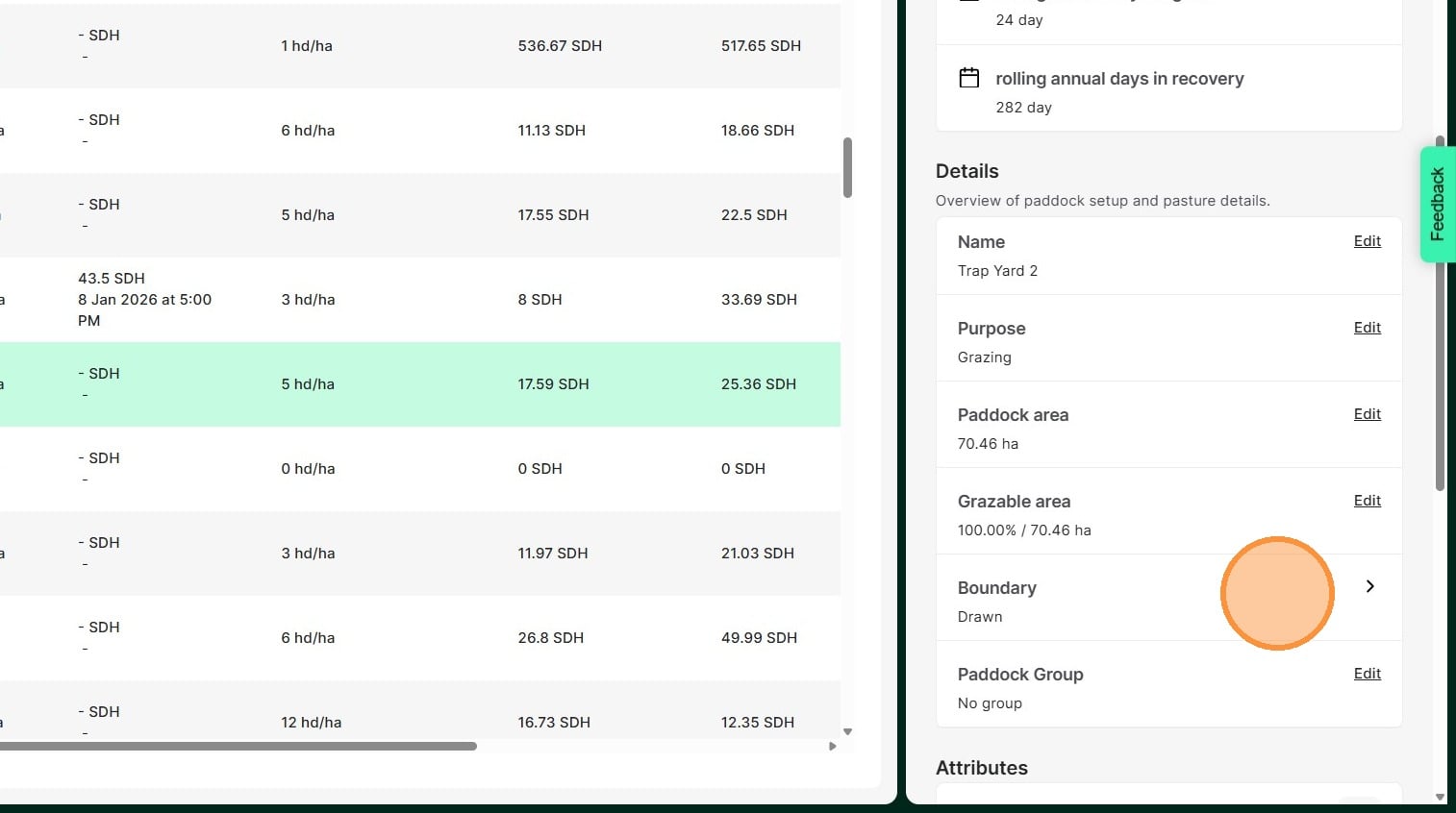 12. Atlas Grazing will calculate the paddock area based on the boundary.