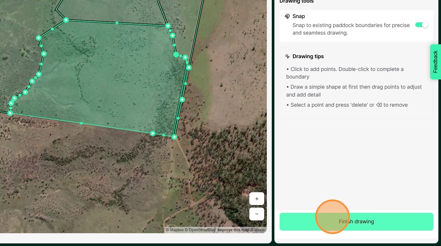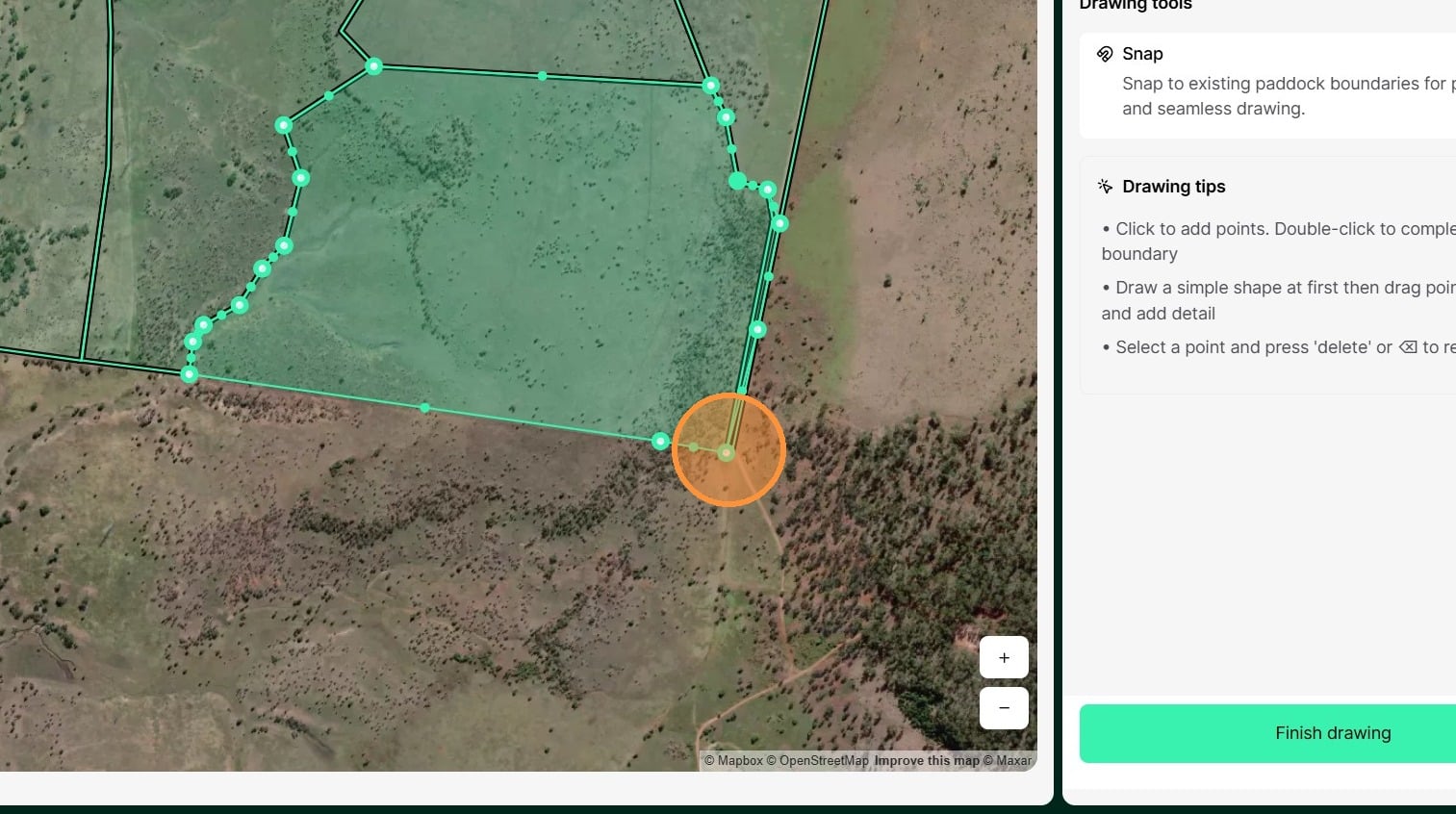 13. When you have completed editing the paddock boundary, click "Finish drawing"