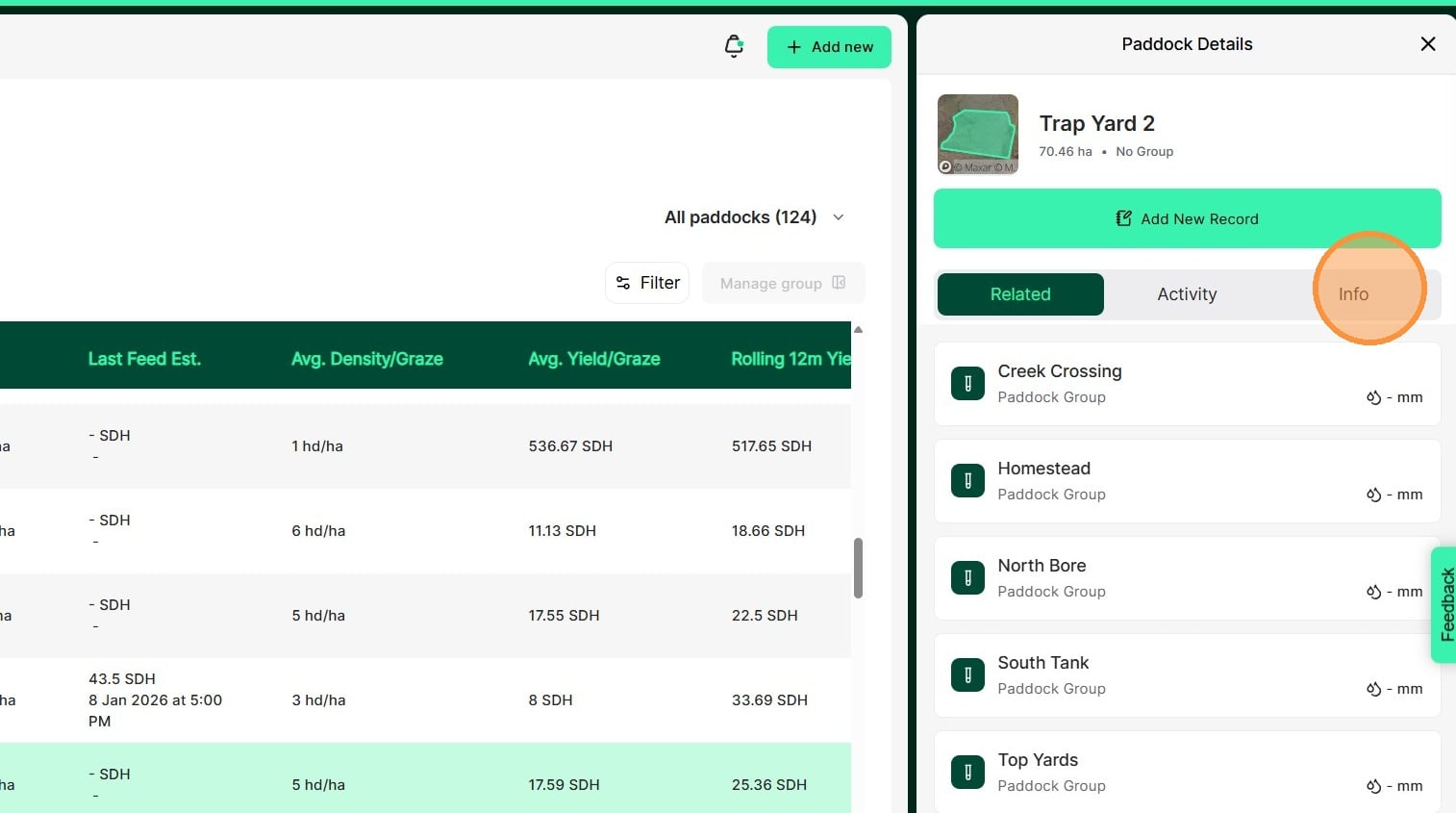 7. Select the relevant paddock from the paddock list or click on the paddock on the digital map.