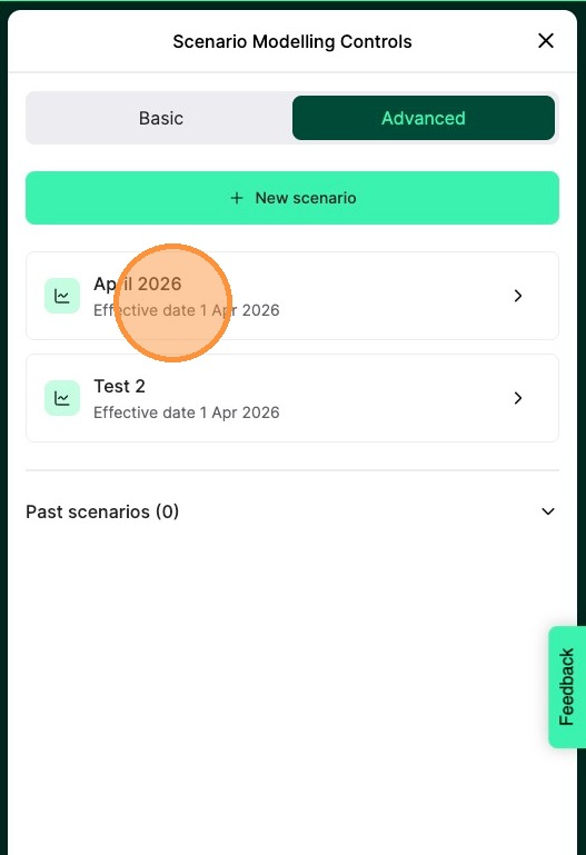 Tip: Note: scenarios where today's date is past the effective date will no longer be able to be used and are moved to past scenarios