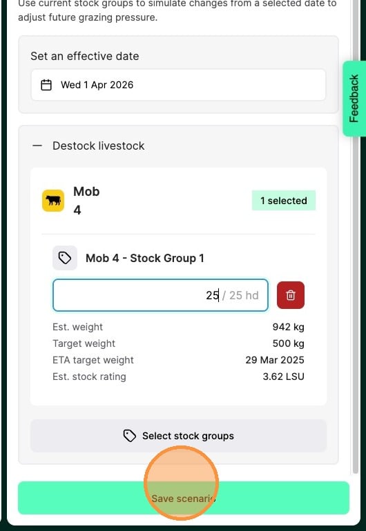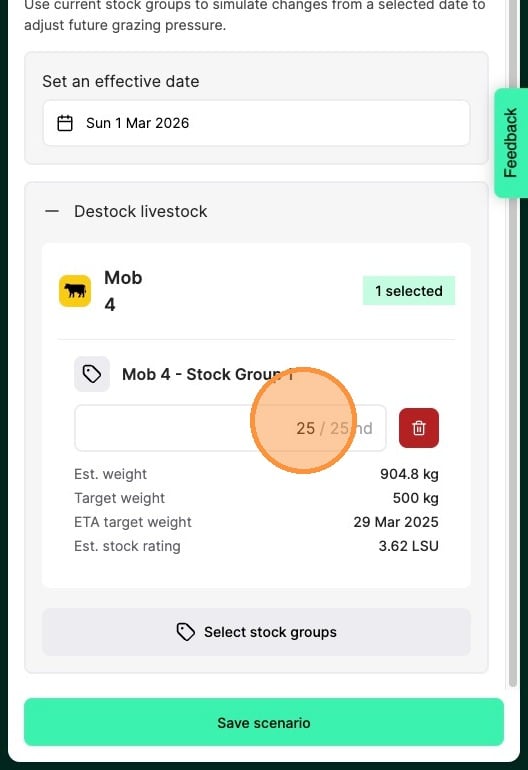7. Select a date you want the destock to take effect from