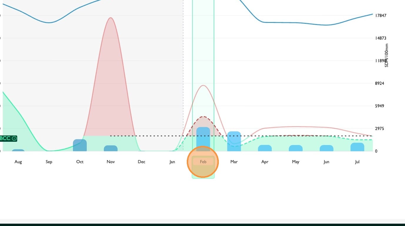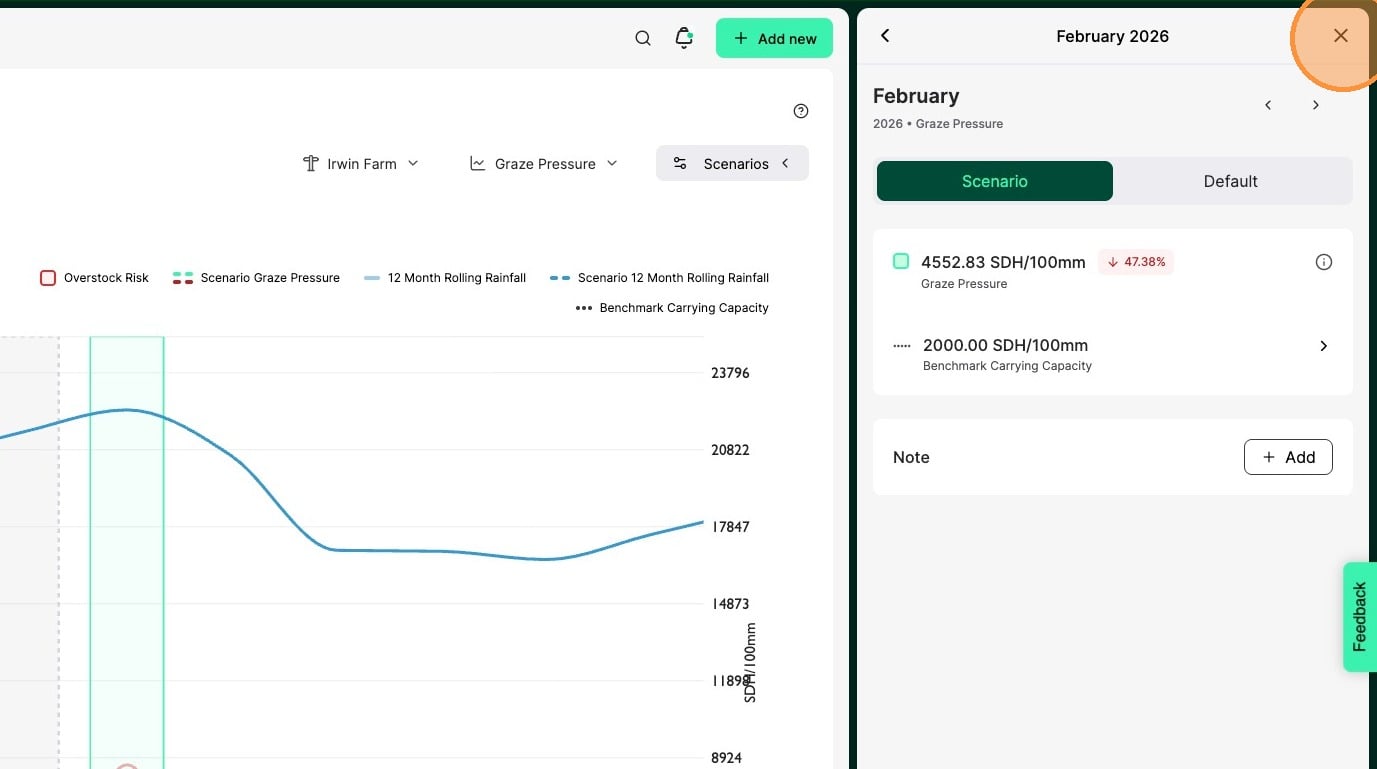 14. The dashed line on the graph represents the selected scenario. If you hover your mouse pointer over the line, the graze pressure value will be shown