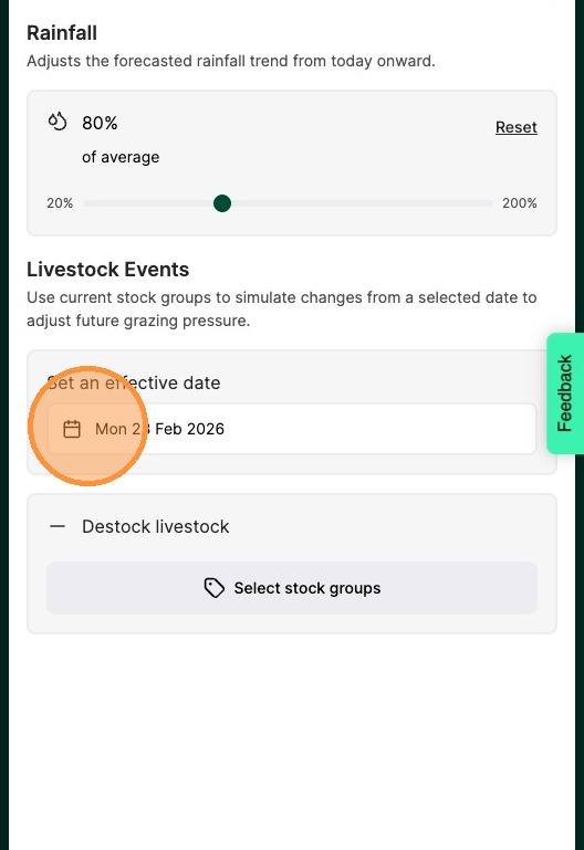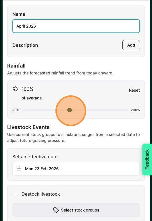 6. Use the slide to change the rainfall amount. This will be a percentage of the forecasted rainfall.