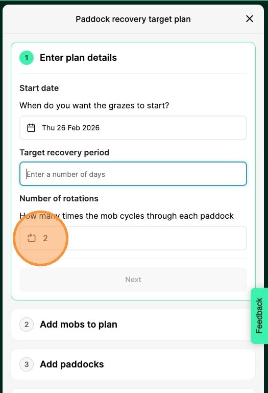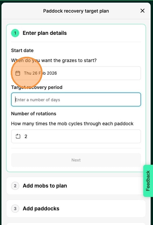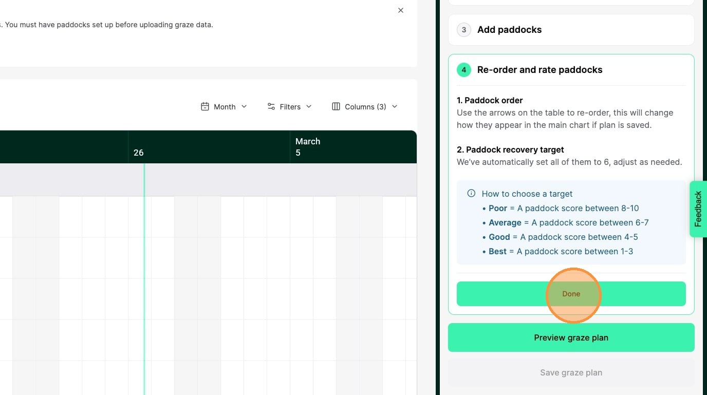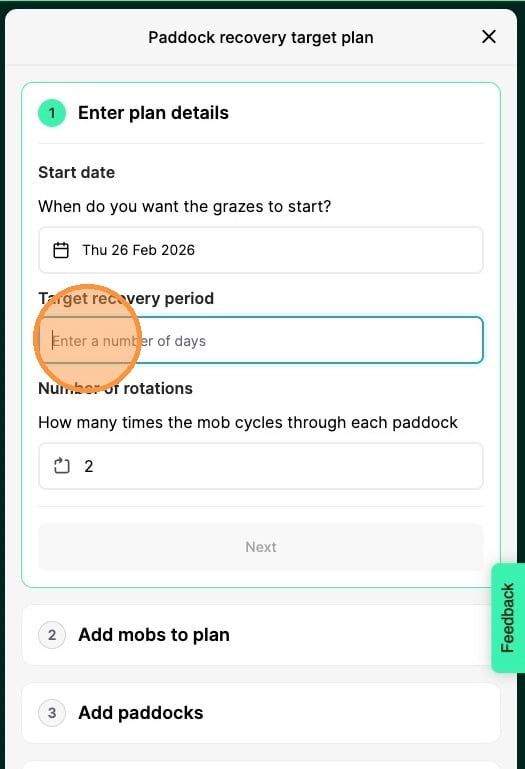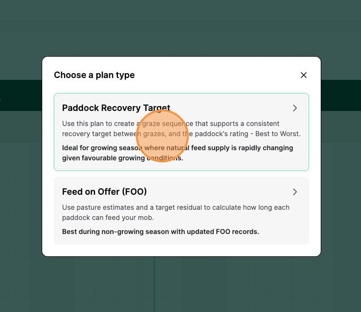 2. Click Paddock Recovery Target