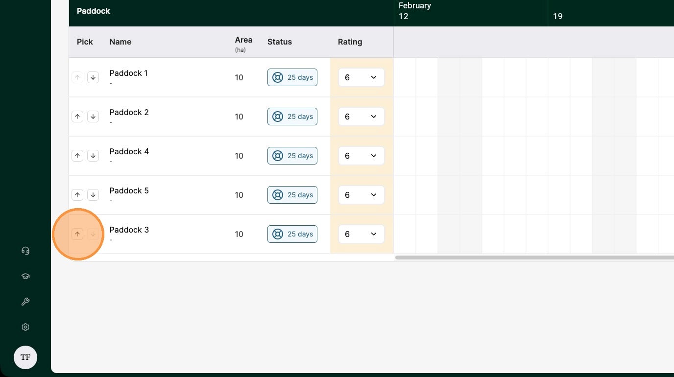 13. Re-order your paddocks to set the order the graze plan will be created in, with the top paddock being the first graze in the rotation