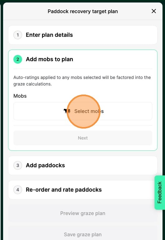 11. Click the checkboxes to select the paddocks you want to include in this plan