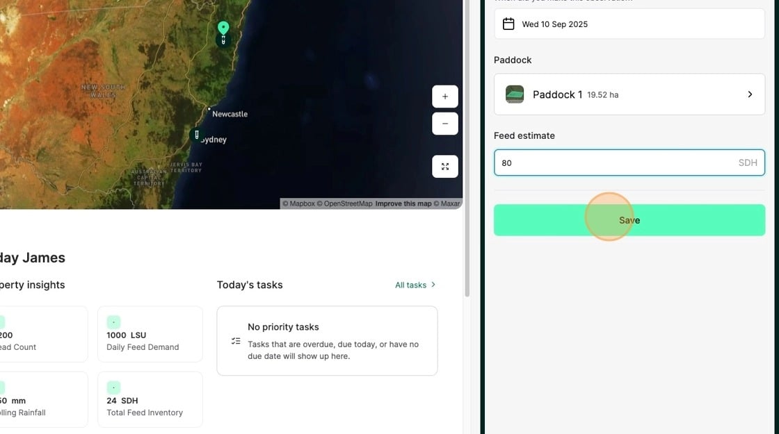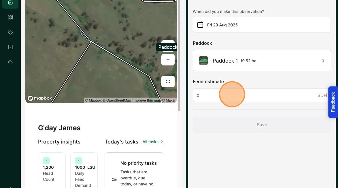 Tip: Recording Feed estimates helps you to quantify your natural feed inventory and improves graze planning. Combined with reported Yield Metrics, regularly recording feed estimates prior and post Graze, enables you to develop this valuable skill giving you control of your graze operations.