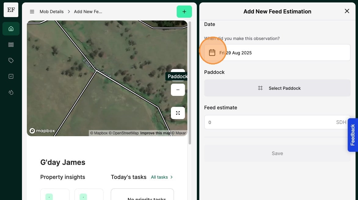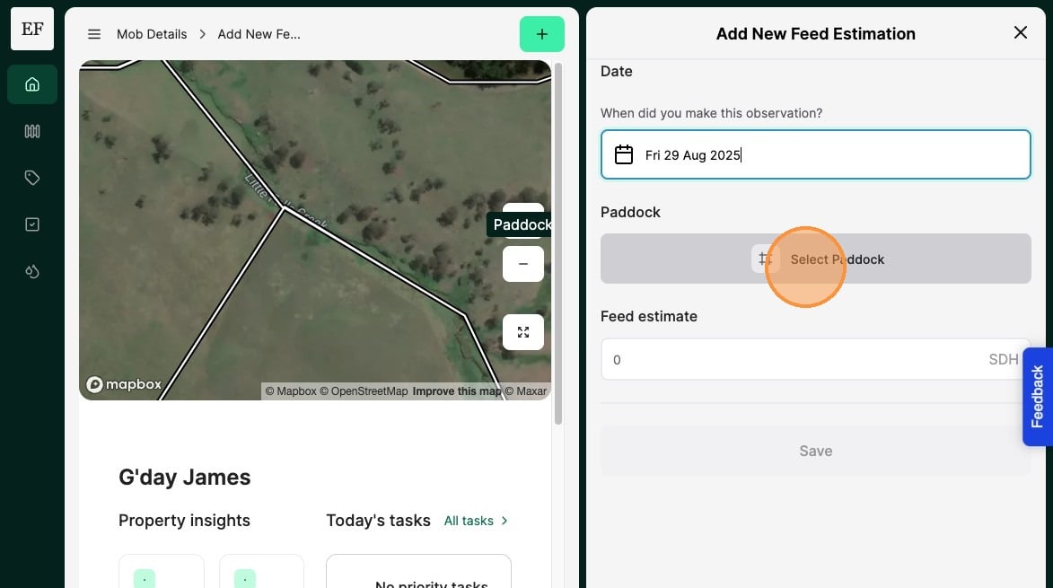 5. Select the "Paddock" the observation is made in